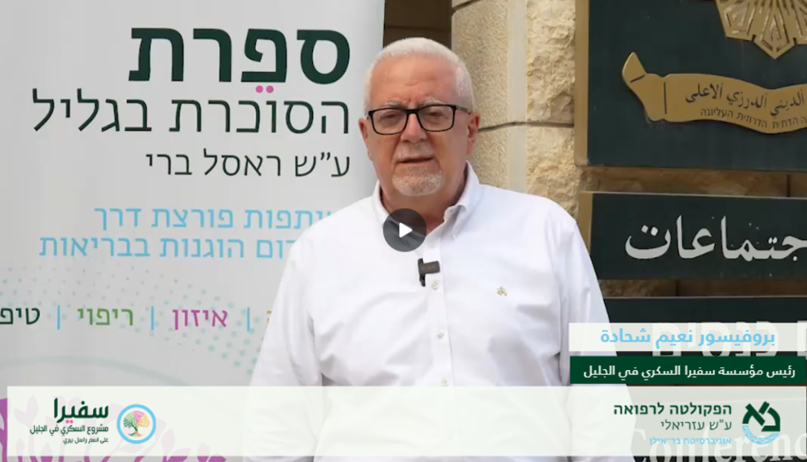 البروفيسور نعيم شحادة – رئيس مؤسسة سفيرا السكري في الجليل يلقي محاضرة في المركز الطبي الجليل (مستشفى نهريا ) في موضوع توفير العلاج الدوائي الأفضل والملائم لمرضى السكري كما قام بعرض اخر مستحدثات سفيرا وهو منظومةالكترونية (حاسبة الكترونية) تخدم الاطباء والطواقم الطبية المعالجين لمرضى السكري،